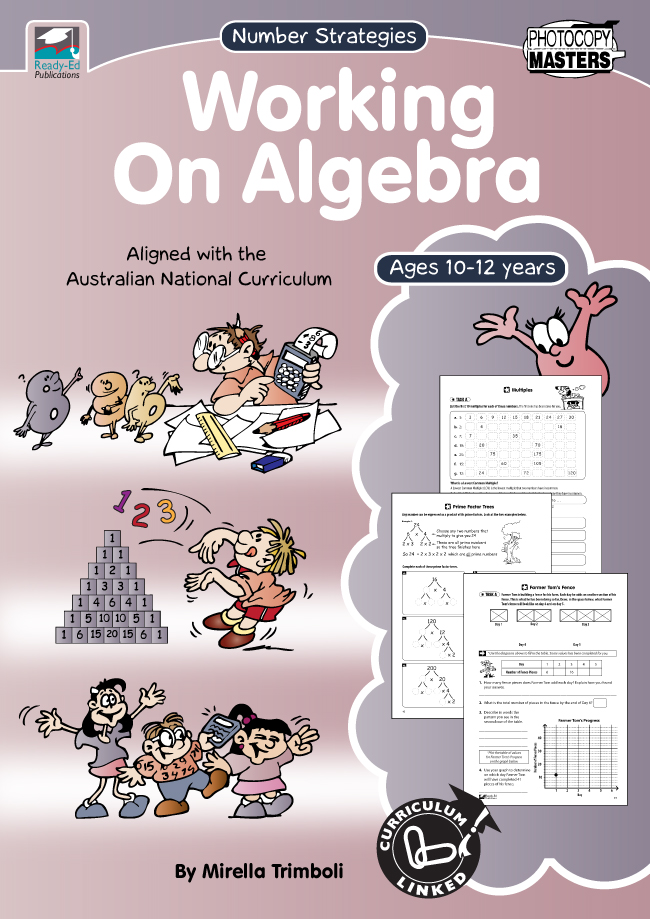 Working on Algebra provides a range of activities to expose students to algebraic ideas. Students are encouraged to look for patterns and to examine ways in which we can begin to generalise our mathematical findings. The emphasis is on providing students with ample opportunity to explain how they know what they know and to practise explaining their thought processes. Exploring number patterns, conjectures, graphs, tables and relationships are all part of learning how to think algebraically.